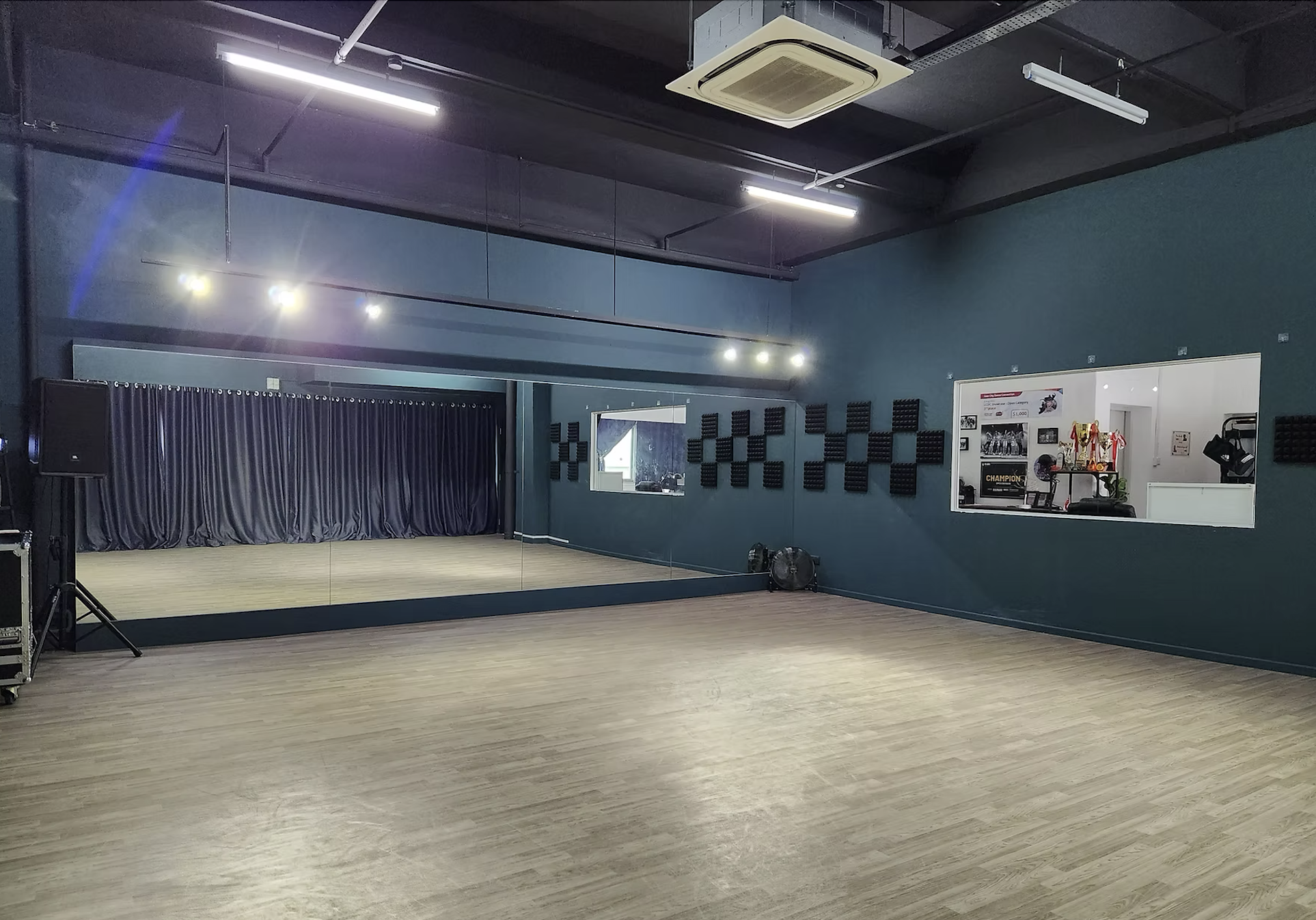 Designed for professional dancers in mind, the studio is equipped with full-length mirrors to help you perfect your form, a premium Renkus-Heinz speaker for crisp, immersive sound, and RGB dimmable track lighting to create the perfect ambience for any session. Additional amenities like air conditioning, a TV, a fridge, and fans enhance comfort during your sessions.