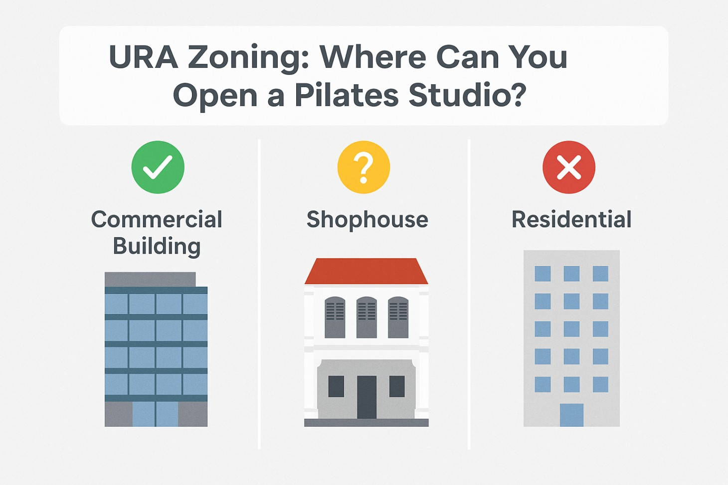 - Planning permissions: The Urban Redevelopment Authority (URA) has zoning rules that determine where you’re allowed to open a fitness studio.
