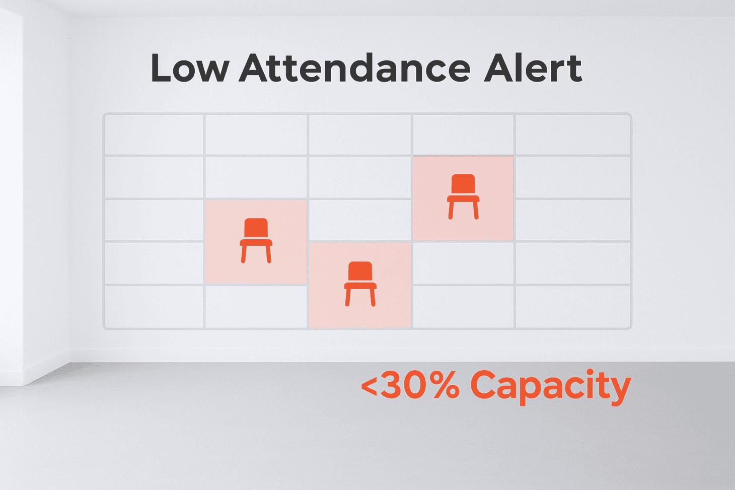 less than 30% attendance should be your first red flag because these underperforming time slots are opportunity costs that prevent you from maximizing your studio's earning potential.