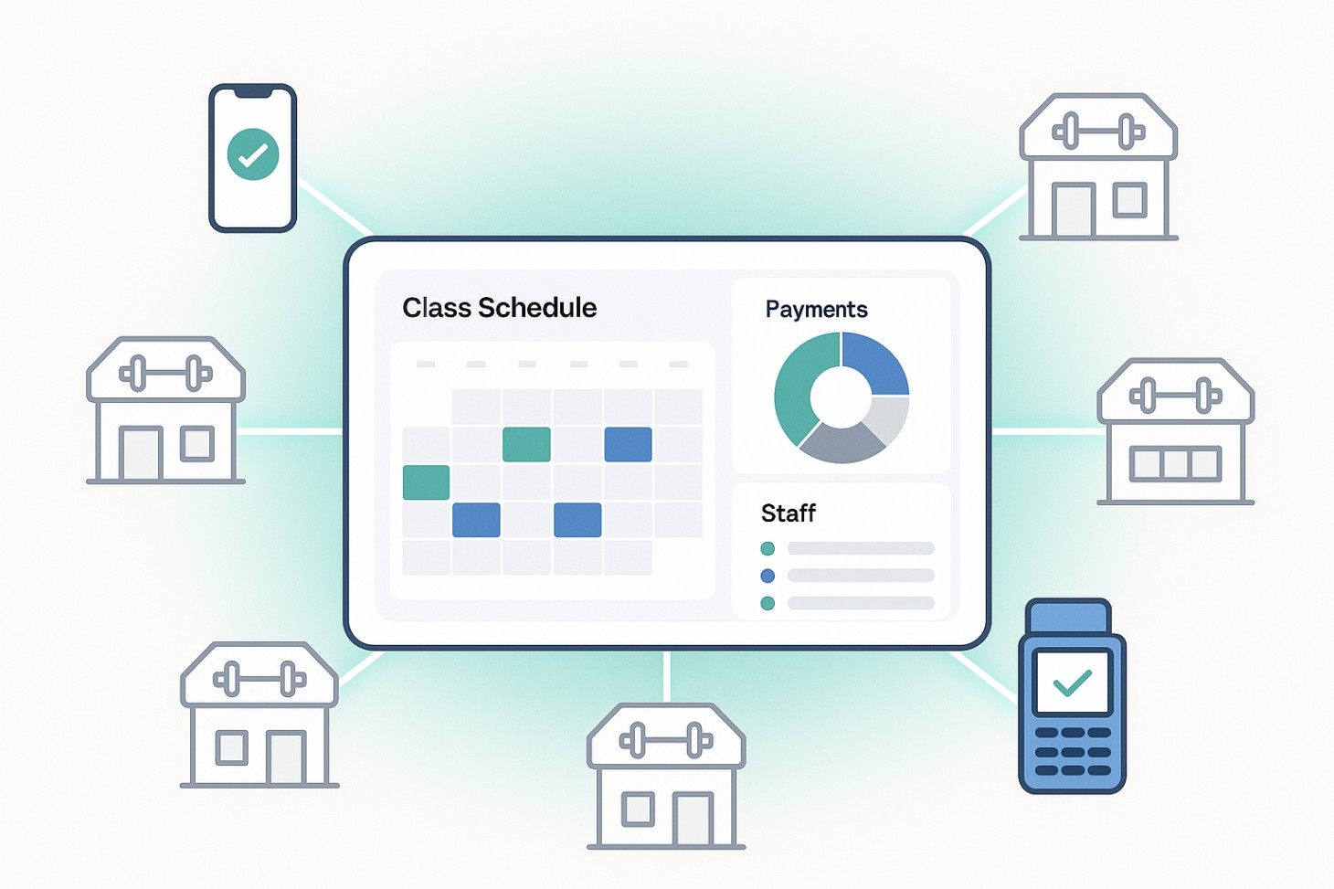 - Cross-location class and staff scheduling: Easily manage timetables across all branches.