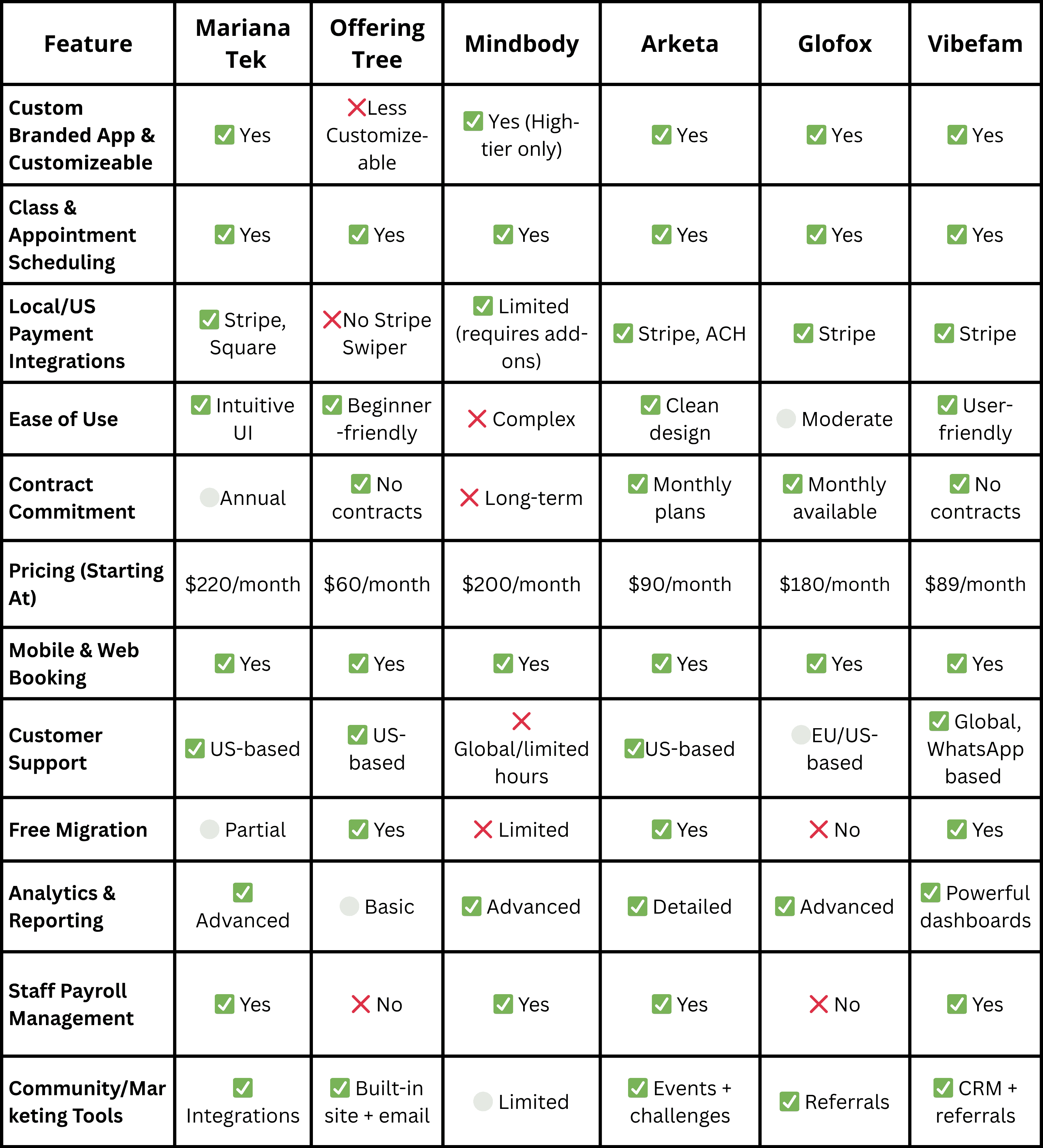 While Mariana Tek can be suitable for some studios, several recurring concerns have emerged that may impact day-to-day operations and long-term growth