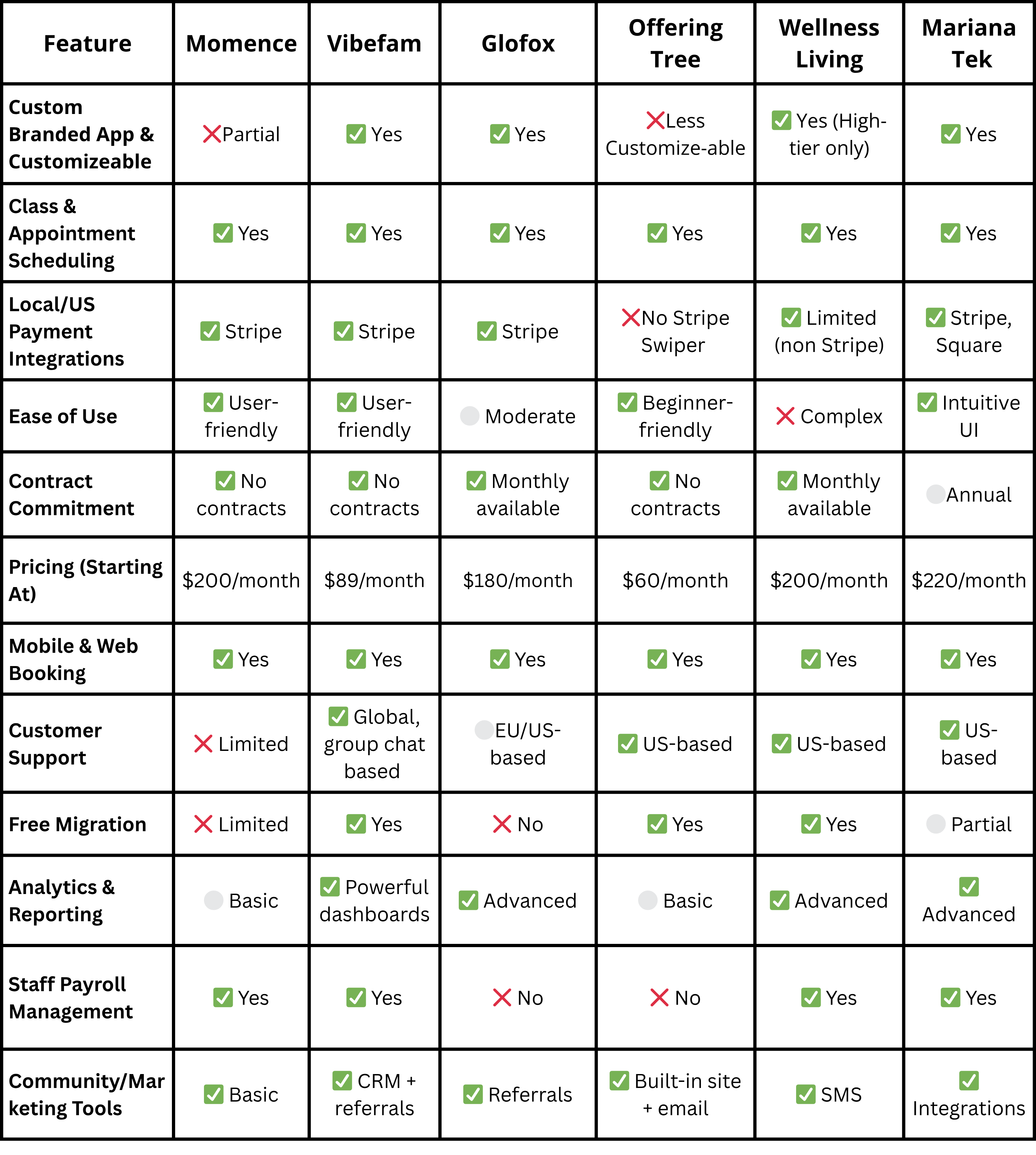 - Reliable support: Timely, Central Time-friendly assistance from platforms like Vibefam, WellnessLiving, and Mariana Tek.