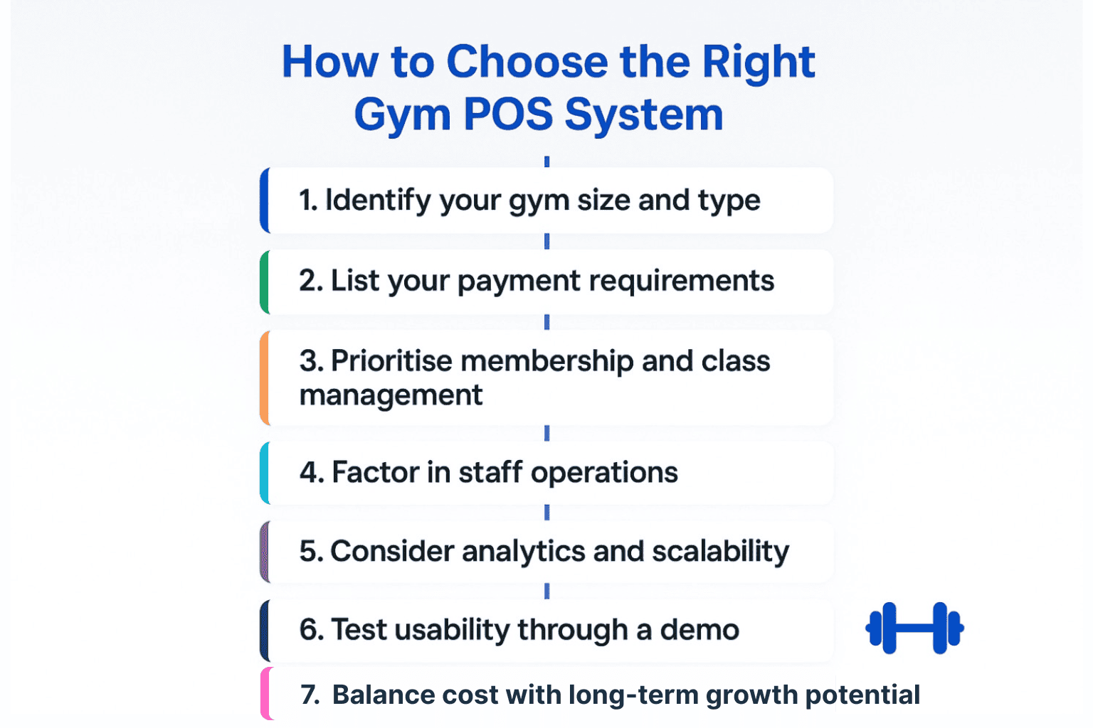 Selecting the right POS system requires more than comparing feature checklists. The decision should be based on your gym’s size, business model, and growth goals.