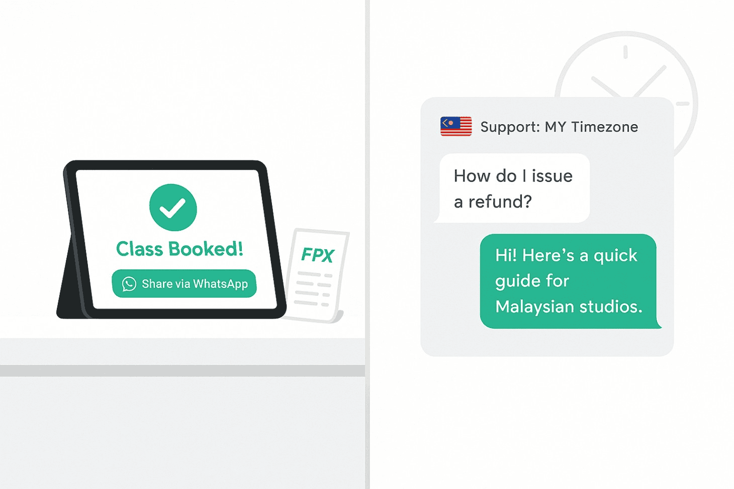 - Messages that people actually read. Daily life in Malaysia centres on mobile messaging. Your system should send timely app push notifications and support WhatsApp or SMS patterns that members respond to, especially for waitlist promotions and start-of-class reminders. For a practical sense of what that looks like, skim a post on reducing last-minute cancellations and automated reminders.