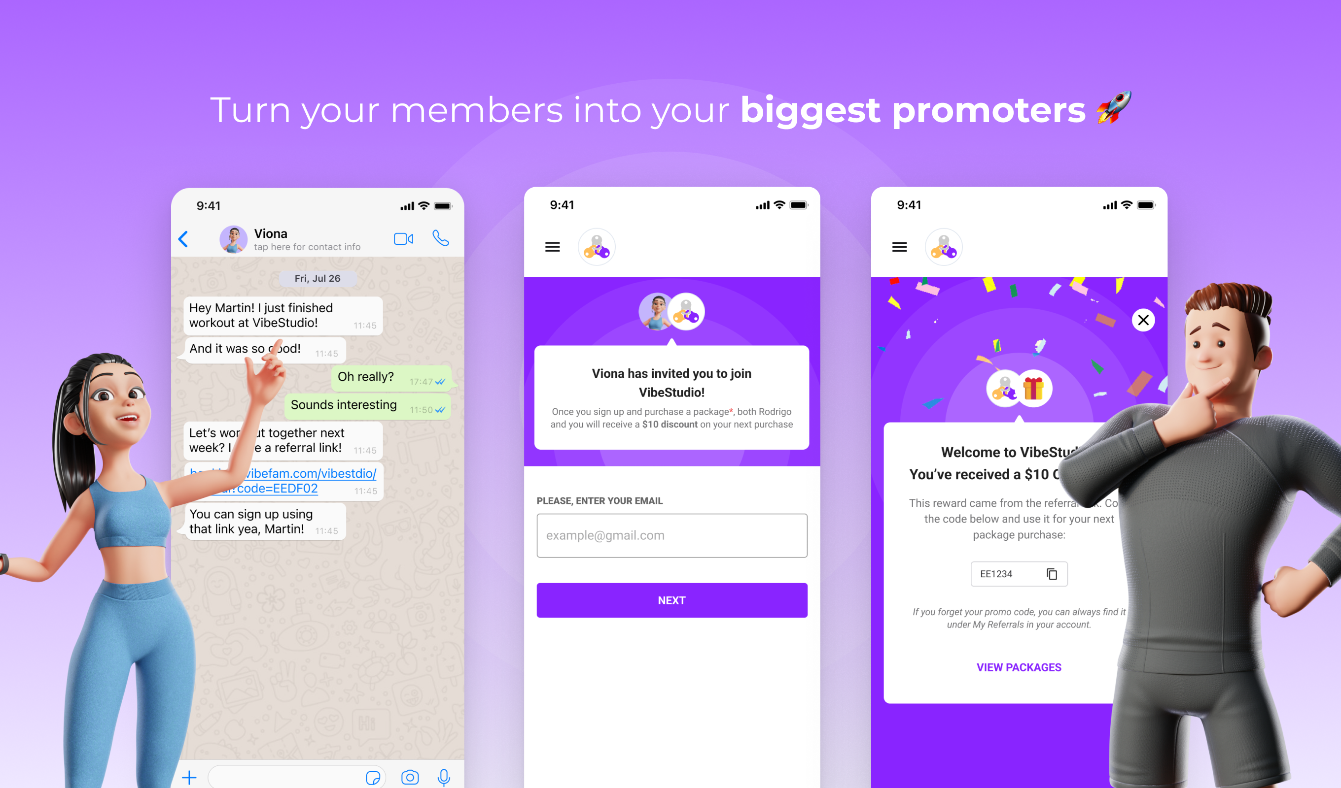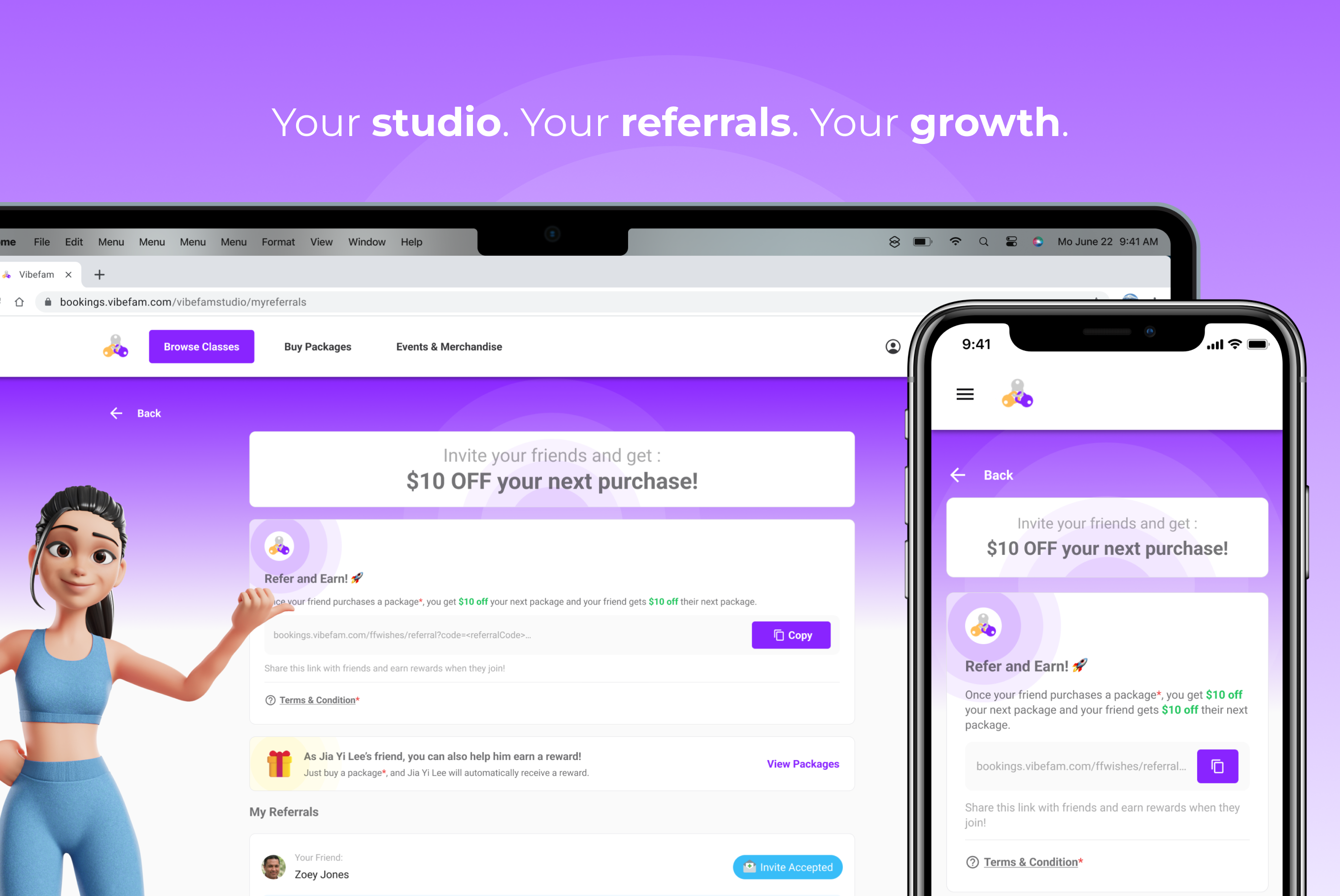 With this update, studios can now create and customize their very own referral program directly in vibefam. This means your members can invite their friends to join your classes, while being rewarded for spreading the word.