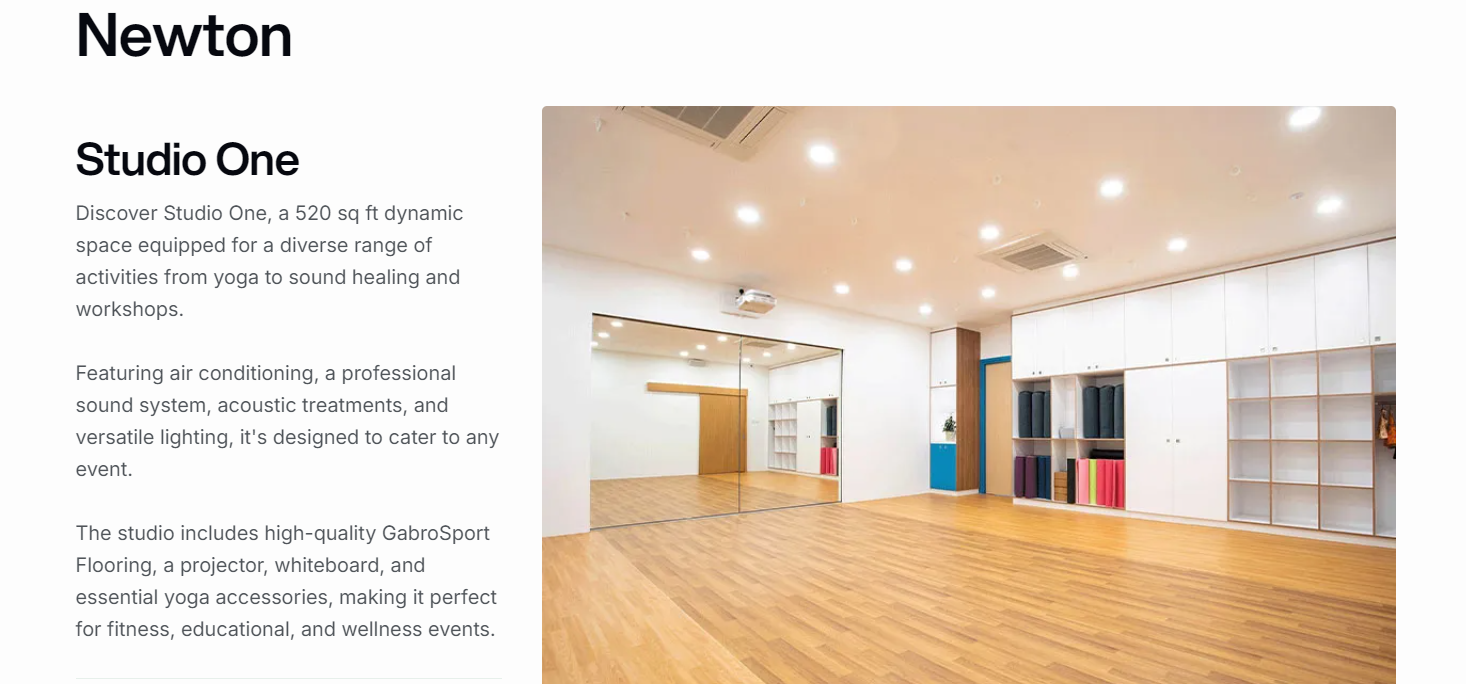 GetSpaces is a platform that has you covered for hourly event space rentals, offering venues for everything from meetings and workshops to dance and yoga classes. With a wide variety of spaces to choose from, you can easily filter your search by date, price range, capacity, type of space, available amenities, and proximity to the nearest MRT station.