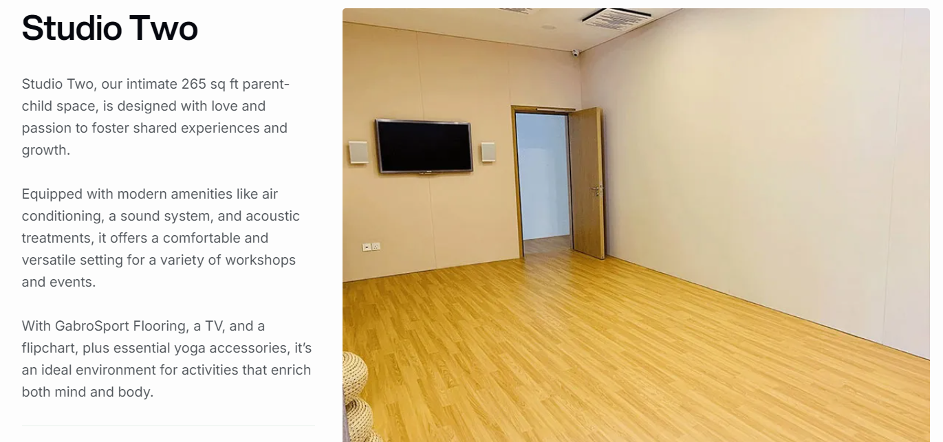 Mindful Space is a yoga and education centre catering to both kids and adults. In addition to their regular classes, they also offer studio rentals for yoga and other activities. The centre features two unique spaces: Studio One is a spacious 520 sq ft area, equipped with 15 yoga mats or 12 aerial hammocks.. Studio Two, while more intimate at 265 sq ft, is perfect for smaller groups, with space for 7 yoga mats. Both spaces are ideal for hosting yoga sessions or other fitness classes. Click here to learn more and get a quote from Mindful Space!